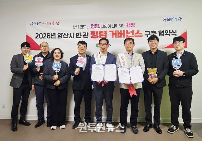 (원투원뉴스) 양산시 미래혁신국(국장 장병조)은 투명하고 공정한 행정 실현을 위해 관내 주요 유관기관과 ‘민·관 청렴 거버넌스 협약’을 체결했다고 밝혔다.
