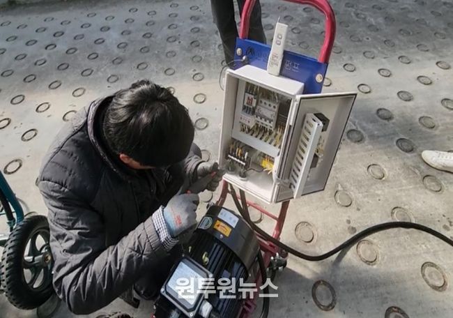 이번 훈련은 기존 장비의 한계를 보완하기 위해 자체적으로 개선한 배수 시스템을 실제 현장에 적용해 보는 데 중점을 뒀다. 기존 중형양수기의 경우 장비가 무거워 신속한 이동과 설치에 어려움이 있다.