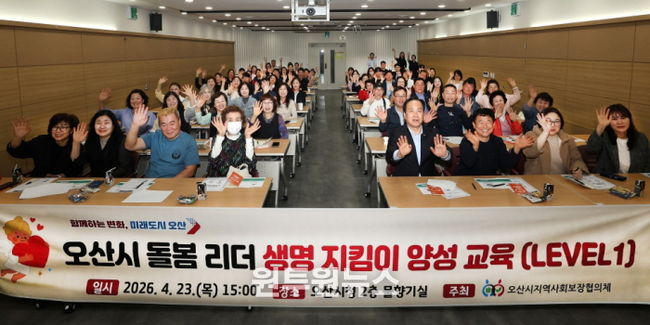 (원투원뉴스) 오산시는 지난 23일 오후 3시 시청 물향기실에서 오산시지역사회보장협의체 위원 60여 명을 대상으로 ‘2026년 오산시 지역리더 생명지킴이 교육’을 실시했다고 밝혔다.