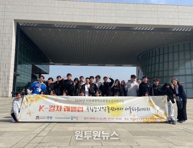 (원투원뉴스) 안성시학교밖청소년지원센터는 지난 21일, 관내 이주배경 학교 밖 청소년 30명을 대상으로 한국 문화에 대한 친밀감을 높이고 사회 적응을 돕기 위한 ‘K-컬처 레벨업: 박물관부터 타워까지’ 프로그램을 진행했다고 밝혔다.