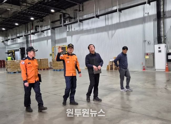 이번 현장 안전지도는 화재 발생 시 대형 인명·재산피해로 이어질 수 있는 냉동·냉장 시설의 안전관리 실태를 점검하고 화재위험 요인을 사전에 제거하기 위해 추진됐으며, 나윤호 소방서장은 관계자로부터 시설 및 소방설비 현황을 청취한 뒤 직접 현장을 확인하며 실질적인 안전관리 상태를 점검했다.