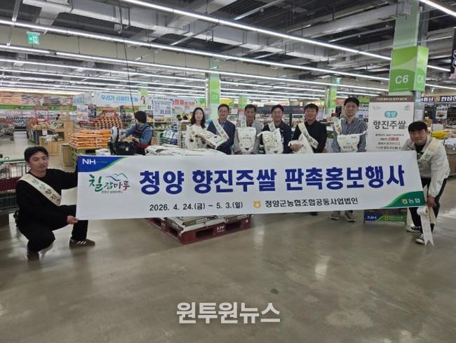 (원투원뉴스) 청양군이 24일부터 오는 5월 3일까지 10일간 농협 하나로마트 대전점(중구 안영동)에서 청양군 대표 고품질 쌀 브랜드인 ‘칠갑마루 향진주쌀’의 판촉·홍보 행사를 진행한다.