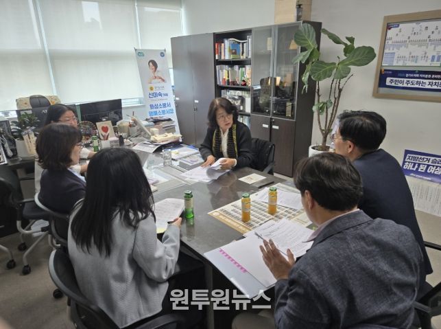 경기도의회 교육기획위원회 신미숙 의원(더불어민주당, 화성4)은 23일(목), 경기도의회에서 경기도교육청 평생교육과와 화성특례시 평생학습과 관계자를 만나 경기도교육청평생교육문화원 건립 추진을 위한 추진사항을 점검하고 협력방안을 모색했다.