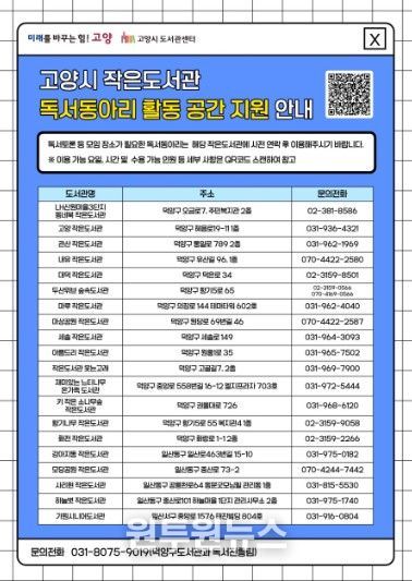 고양시 관계자는 “이번 공간 지원 사업이 독서동아리의 활동 기반을 넓히고, 작은도서관이 지역사회 내 커뮤니티 공간으로서 기능을 강화하는 계기가 되길 바란다”며, “앞으로도 시민들이 ‘함께 읽는 독서 문화’를 누릴 수 있도록 지원하겠다”고 말했다.