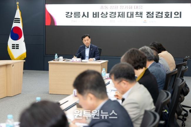 (원투원뉴스) 강릉시는 24일 시청 8층 상황실에서 중동상황 장기화에 따른 유가 상승 및 원자재 수급 차질 등 지역경제 전반에 미치는 영향을 점검하고 선제적 대응 방안을 마련하기 위해 비상경제대책 점검회의를 개최했다.