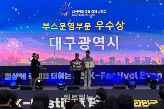 (원투원뉴스) 대구문화예술진흥원 문화예술본부는 지난 4월 17일~19일, 수원컨벤션센터에서 열린 제6회 대한민국대표축제엑스포에 대구 지역 대표 축제 브랜드 ‘판타지아대구페스타’ 홍보로 부스운영부문 우수성을 인정받아 ‘베스트 축제 어워드 부스운영 부문 우수상’을 수상했다.