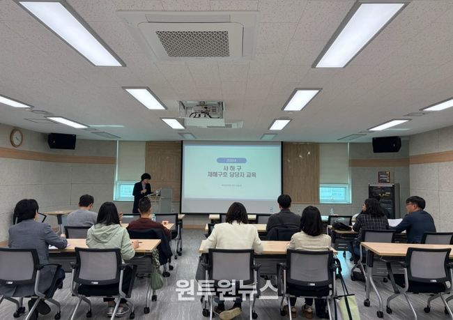 (원투원뉴스) 부산 사하구는 지난 23일 여름철 재난 발생에 대비한 현장 대응 역량 강화를 위해 재해구호 담당자 교육을 실시했다.