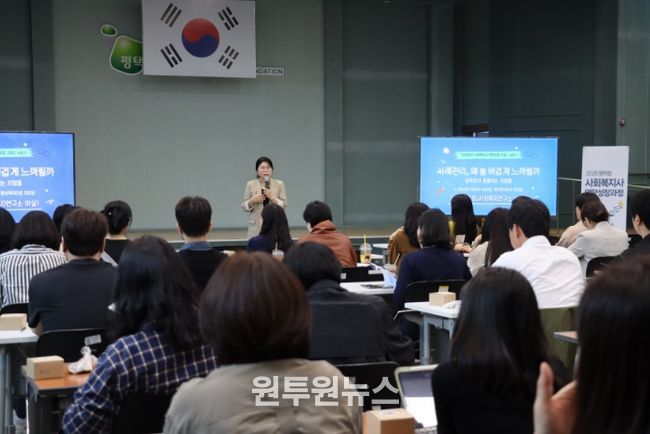 (원투원뉴스) (재)평택복지재단(대표이사 신승연)은 4월 24일, 팽성복지타운 2층 대강당에서 관내 사회복지시설 종사자 및 사례관리 담당 공무원 등 약 60명이 참석한 가운데 '2026년 사회복지사 역량성장 과정' 4회기 교육을 성황리에 개최했다.