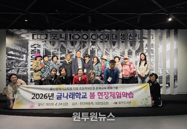 (원투원뉴스) 울산 울주도서관(관장 최종길)은 24일 현대자동차 울산공장과 대왕암공원에서 초등 학력 인정 문해교육 ‘글나래학교’ 학습자 20여 명을 대상으로 봄맞이 현장 체험학습을 진행했다.