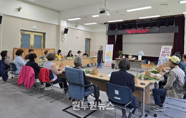 (원투원뉴스) 충북 증평군보건소가 24일 재가 암환자와 가족을 대상으로 원예 프로그램 ‘꽃바구니 만들기’를 운영해 참여자들의 큰 호응을 얻었다.