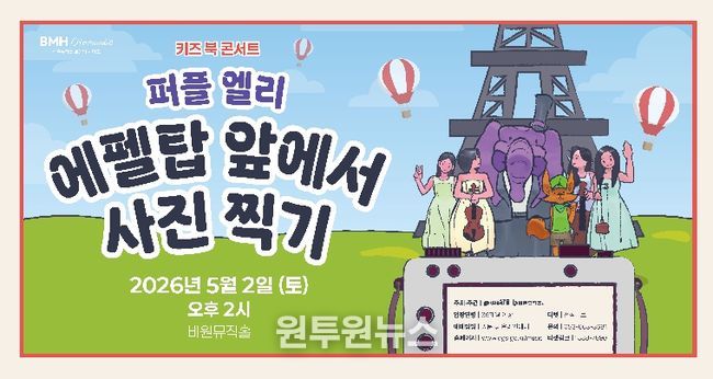 (원투원뉴스) 비원뮤직홀에서는 어린이날을 기념하기 위해 아이와 가족이 함께 감상할 수 있는 키즈 북 콘서트 ‘퍼플 엘리 – 에펠탑 앞에서 사진 찍기’를 오는 5월 2일 개최한다.