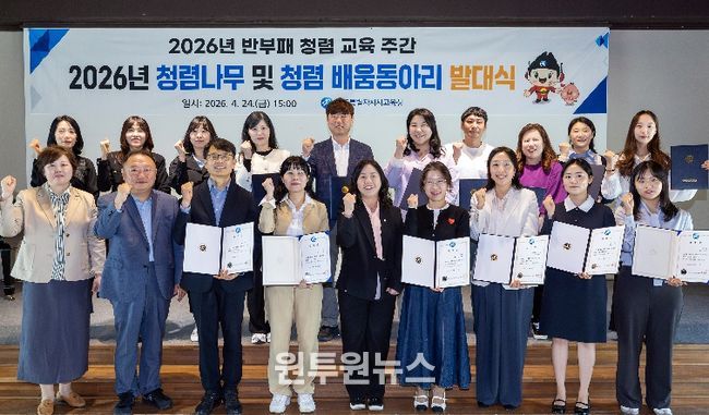 (원투원뉴스) 세종특별자치시교육청은 4월 24일 오후 3시, 소담동 소재 비전트리에서 ‘2026년 청렴 내부 강사(청렴 나무) 위촉식 및 청렴 배움 동아리 발대식’을 개최했다.