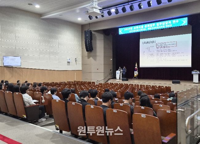 이번 교육은 본청, 직속기관, 각급 학교의 교육시설공제 업무 담당자를 대상으로 ▲공제가입 실무교육(가입대상 안내, 재난사고 관련 미가입 면책사례, 추가가입 및 환급절차 등), ▲공제보상 실무교육(재난 발생 시 보상절차, 최근 재난사례 분석, 재난사고 예방을 위한 안전관리 방법 등)을 중심으로 진행됐다.