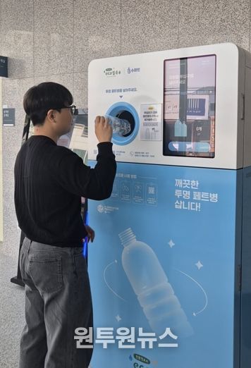 투명 페트병 무인회수기는 인공지능(AI)과 사물인터넷(IoT)기술을 활용한 스마트 재활용 시스템으로, 내용물을 비우고 라벨을 제거한 투명페트병을 1인당 하루 50개까지 투입 가능하고, 개당 10원의 포인트가 적립되는 방식이다.