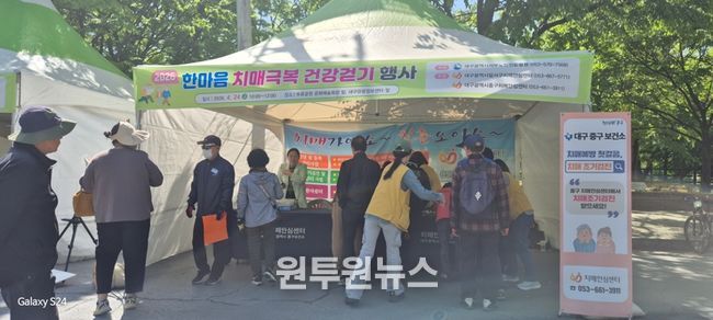 (원투원뉴스) 대구 중구보건소 치매안심센터는 지난 24일 두류공원 산책로 일대에서 치매 극복을 기원하고, 치매와 더불어 살아갈 수 있는 사회적 공감대 형성을 위해 ‘2026년 한마음 치매극복 건강걷기 행사’를 개최했다.