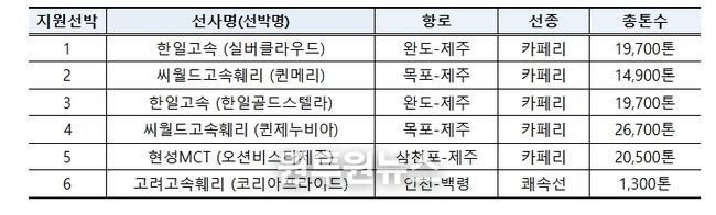 당초 펀드 지원 대상은 연안여객선이었으나, 연안여객업계와 연안화물업계의 형평성을 고려하여 2024년도부터 지원 대상을 연안화물선까지 확대했다. 그 결과 올해까지 조성된 2,490억 원의 펀드 자금으로 총 11척을 지원하고 있으며, 그 중 실버클라우드(제주-완도), 퀸제누비아(목포-제주) 등 6척의 연안여객선은 건조가 완료되어 항로에 투입되고 있다.