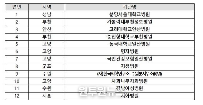 대표단에는 분당서울대학교병원, 가톨릭대학교부천성모병원, 고려대학교안산병원, 순천향대학교부천병원, 동국대학교일산병원, 명지병원, 국민건강보험일산병원, 지샘병원, (재)한국의학연구소(KMI) 수원분사무소, 사과나무치과병원, 강남여성병원, 시화병원 등 도내 의료기관 12개소가 참여했다.