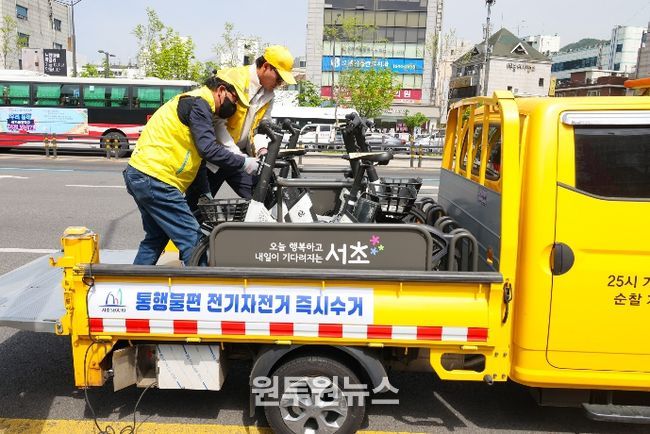 (원투원뉴스) 서울 서초구가 보도 위 무분별하게 방치돼 보행자 통행을 방해하는 전기자전거 문제를 해결하기 위해 4월 27일부터 ‘통행방해 전기자전거 즉시 수거’ 본격 시행에 나선다고 밝혔다.