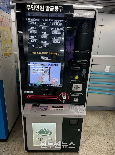 (원투원뉴스) 서울 강북구는 구민들이 무인민원발급기를 더욱 쉽고 편리하게 이용할 수 있도록 ‘큐알(QR)코드 모바일 가이드’를 전격 도입했다고 밝혔다.