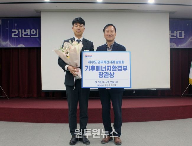 (원투원뉴스) 안동시시설관리공단은 한국상하수도협회가 주최하고 기후에너지환경부가 후원한 '2026 WATER KOREA 하수도 업무 개선 발표회'에서 최고 영예인 기후에너지환경부 장관상을 수상했다고 4월 27일 밝혔다.