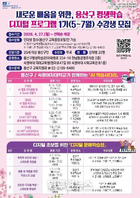 박희영 용산구청장은 “이번 공모사업 선정은 용산형 평생교육 정책의 의미 있는 성과이자, 지속 가능한 학습 도시로 도약하는 계기”라며, “앞으로도 구민 누구나 배움의 기회를 누릴 수 있도록 다양한 평생학습 기반을 확대해 나가겠다”라고 말했다.