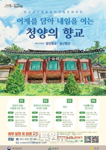 먼저, 청양향교와 정산향교에서는 오는 10월까지 ‘어제를 담아 내일을 여는 청양의 향교’ 프로그램이 운영된다.