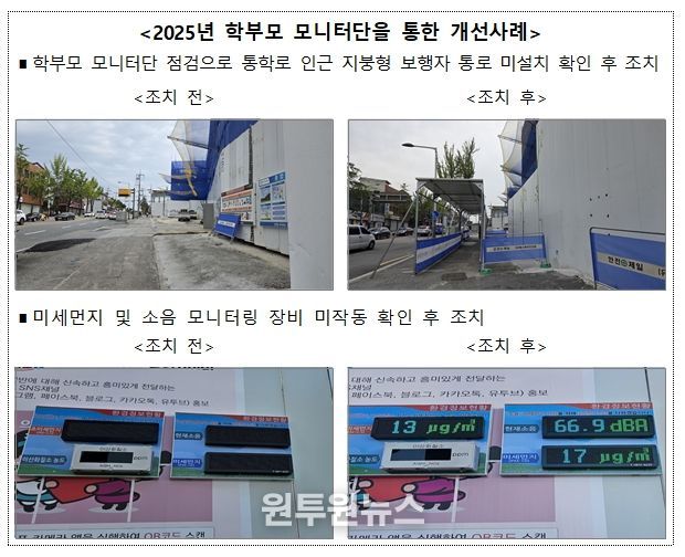 학부모 현장 모니터단(이하, 모니터단)은 교육환경평가 승인사항에 대한 사후관리를 통해 학교 인근 공사로 발생할 수 있는 위험요소를 사전에 방지하고자 2024년부터 운영됐으며 올해 3년 차를 맞는다. 올해는 전국 44개 사업지를 대상으로 학부모 모니터단 위원 51명을 위촉했으며, 학부모가 직접 학교 주변 사업지를 방문해 교육환경평가에 따른 조치계획이 제대로 이행되고 있는지 점검할 예정이다.