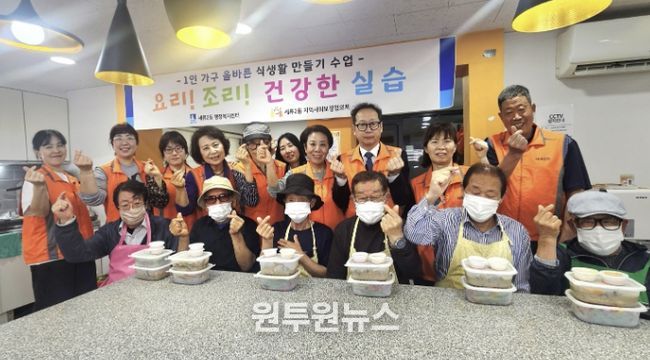 (원투원뉴스) 수원시 권선구 세류2동 행정복지센터와 지역사회보장협의체는 지난 23일, 세류2동 도시재생현장지원센터에서 독거 어르신 등 취약계층 1인 가구 6명과 함께하는 '요리조리 건강한 수업' 실습을 진행했다.