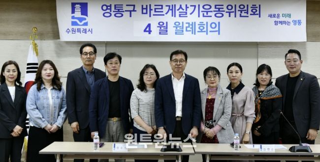 (원투원뉴스) 수원시 영통구는 지난 24일 바르게살기운동 영통구지도위원회가 영통구청 상황실에서 각 동 위원장 및 총무 등 14명이 참석한 가운데 4월 월례회의를 개최했다고 밝혔다.