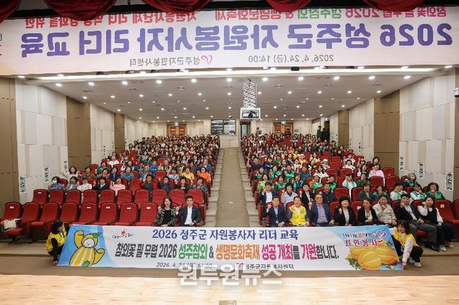 (원투원뉴스) 경북 성주군자원봉사센터(센터장 이명진)는 지역 공동체의 따뜻한 변화를 이끄는 자원봉사 리더들을 한자리에 모아 의미 있는 교육의 장을 마련했다. 4월 24일 성주군청 대강당에서 열린 '2026 성주군 자원봉사자 리더 교육'은 단순한 역량 강화 교육을 넘어 나눔과 연대의 가치를 되새기고, 다가오는 지역 대표 축제를 함께 준비하는 결속의 자리로 깊은 울림을 전했다.