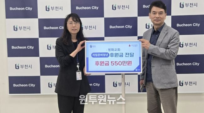 (원투원뉴스) 부천시는 지난 24일 중동 힐스테이트 프로그램실에서 ‘평화교회 자립준비청년 돕기 후원금 전달식’을 열었다. 이번 전달식은 평화교회가 지역 내 아동복지 향상과 나눔 문화 확산을 위해 마련됐다.