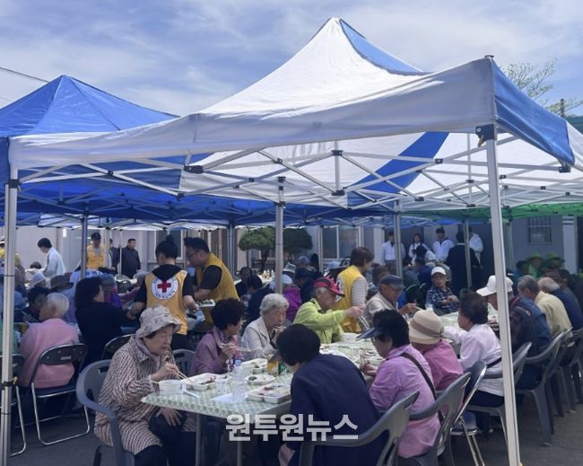 (원투원뉴스) 대한적십자사 연천봉사회는 지난 26일 연천읍행정복지센터 주차장에서 지역사회 어르신들을 위한 따뜻한 나눔 행사인 ‘사랑나눔 경로잔치’를 개최했다.