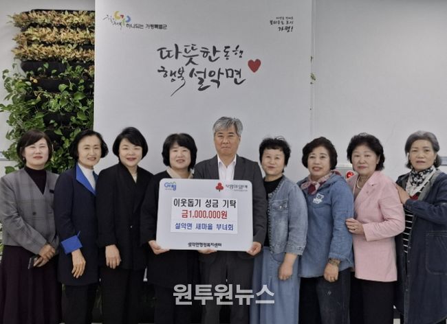 이동철 설악면장은 “지역의 주요 행사마다 적극적으로 참여하며 헌신해 주시는 부녀회장님과 회원들께 깊은 감사를 드린다”며 “전달받은 성금은 지원이 절실한 곳에 소중히 사용하겠다”고 화답했다.