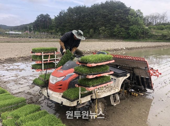 (원투원뉴스) 강릉시는 관내 벼 재배면적이 2,259ha로 본격적인 영농철을 맞아 27일 주문진읍 장덕리 일원 논에서 올해 첫 모내기를 실시했다고 밝혔다.