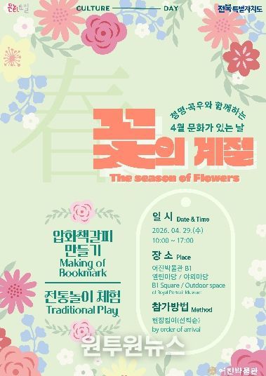 (원투원뉴스) 전주시 어진박물관은 오는 29일 4월 ‘문화가 있는 날’을 맞아 ‘꽃의 계절’을 주제로 한 체험프로그램을 운영한다고 27일 밝혔다.