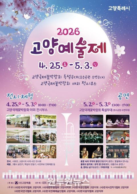 (원투원뉴스) 고양특례시의 봄을 수놓는 지역 예술 축제 ‘2026 고양예술제’가 오는 5월 3일까지 고양국제꽃박람회 특설무대와 야외 전시부스에서 개최된다.