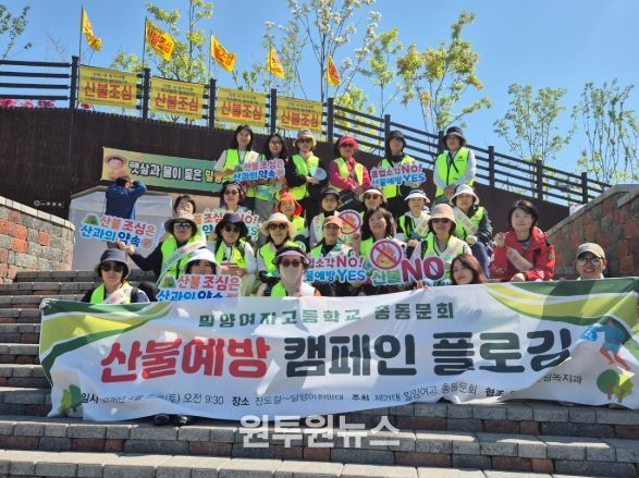 (원투원뉴스) 제21대 밀양여자고등학교 총동문회(회장 김상숙)는 지난 25일 용두산 생태공원 잔도길에서 달팽이전망대에 이르는 구간에서 ‘산불 예방 캠페인’을 펼쳤다.