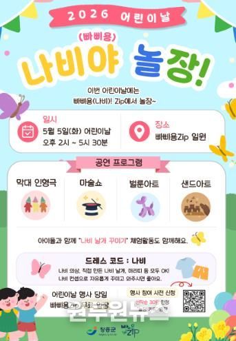 행사장에는 ‘나비 로드’가 조성되며, 드레스코드는 ‘나비’로 설정돼 나비 날개, 머리띠 등 다양한 소품과 의상을 활용해 아이들이 축제의 한 장면을 직접 완성하게 된다.