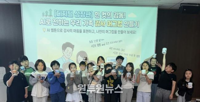 이번 프로그램은 초등학교 4~6학년 청소년 15명이 참여한 가운데 진행됐으며, 생성형 인공지능(AI)을 활용한 웹툰 제작과 머그컵 굿즈 제작을 결합한 체험형 활동으로 운영됐다.
