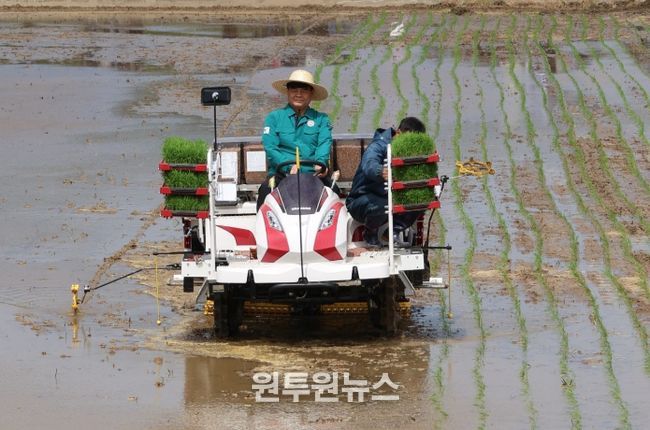 (원투원뉴스) 동해시는 27일 망상동 511번지 일원에서 올해 첫 모내기를 실시하며 본격적인 영농철 시작을 알렸다고 밝혔다.