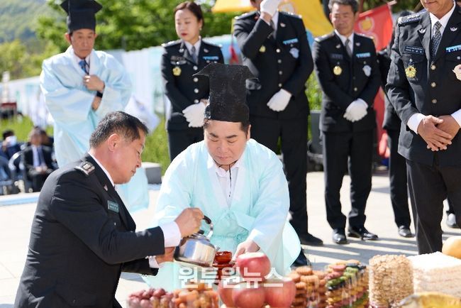 (원투원뉴스) 아산시는 지난 26일 신정호 이순신 장군 동상 앞에서 ‘제65회 아산 성웅 이순신축제’의 성공적 개최를 기원하는 ‘이순신 장군 동상 친수식’을 거행했다고 밝혔다.