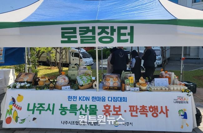 나주시는 지난 4월 25일 한전KDN 본사에서 열린 ‘2026 한전KDN 노사합동 한마음 다짐대회’와 연계해 농특산물 홍보 판촉 행사를 추진했다고 27일 밝혔다.