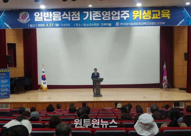 (원투원뉴스) 청도군은 27일 청소년수련관 다목적홀에서 2026년도 일반음식점 기존 영업주 위생교육을 실시했다.