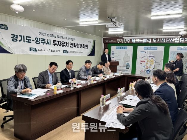 (원투원뉴스) 경기도는 27일 경기양주 테크노밸리 현장사무소에서 ‘경기도–양주시 투자유치 전략합동회의’를 열고, 양주시 주요 개발사업 현황을 공유하며 투자유치 협력 방안과 실행 전략을 논의했다.