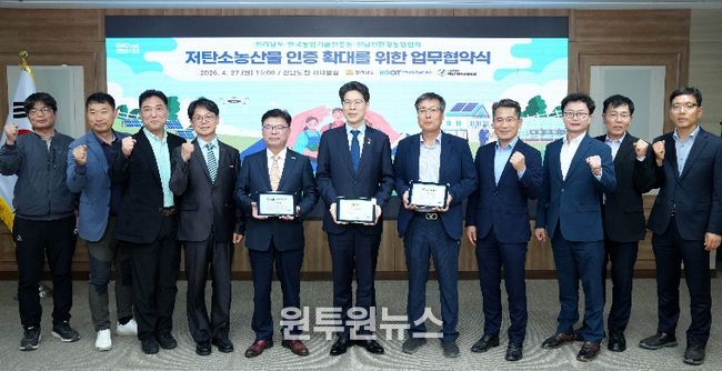 (원투원뉴스) 전라남도는 27일 도청에서 한국농업기술진흥원, 전남친환경농업협회와 함께 저탄소 농산물 인증 확대와 탄소 저감 실천을 위한 업무협약을 했다.