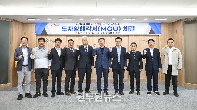 (원투원뉴스) 문경시는 4월 27일 시청 제2회의실에서 신기제2일반산업단지 내 ㈜산청이식품 과 마성농공단지 내 ㈜하늘빛식품과 투자양해각서(MOU)를 체결했다.