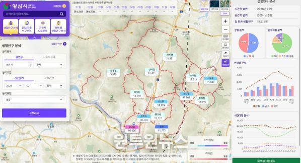 양산시 관계자는 “생활인구 분석 서비스를 통해 시민이 직접 지역 인구 흐름을 확인할 수 있는 기반을 마련했다.”며 “앞으로도 데이터 기반 행정을 지속 확대해 시민이 체감할 수 있는 정책을 추진해 나가겠다.”고 말했다.