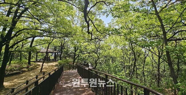 이 구간에는 경사가 완만한 나무 바닥(덱)이 조성돼 보행약자 등 누구나 안전하고 편안하게 숲길을 산책할 수 있다. 조명시설도 이번에 새로 설치돼 야간에도 안전하게 이용할 수 있다.