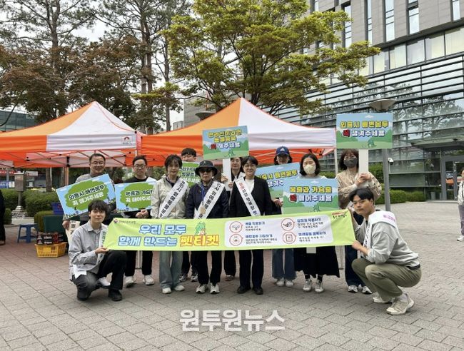 (원투원뉴스) 용인특례시 수지구는 27일 성숙한 반려동물 문화 조성을 위해 수지구청역 인근과 수지구청 광장에서 ‘반려동물 펫티켓’ 캠페인을 실시했다고 28일 밝혔다.