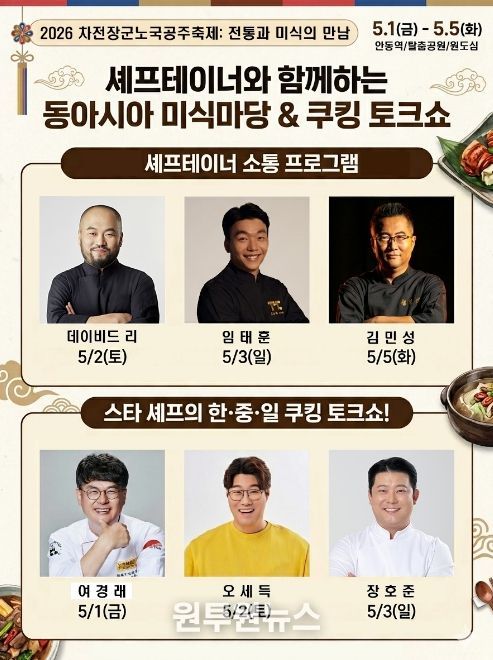 특히 축제 기간 중에는 대중에게 친숙한 셰프테이너 3인이 현장을 방문해 축제의 흥행을 돕는다. 5월 2일 데이비드 리(양식)를 시작으로 3일 임태훈(중식), 5일 김민성(일식) 셰프가 각각 축제장을 찾아 관람객들과 직접 소통하며 동아시아 미식의 매력을 전파할 예정이다.